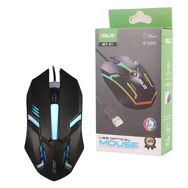 ماوس گیمینگ ایسوس مدل MT-X1 برای گیمرها و کاربران حرفهای که به دقت، دوام و راحتی طولانیمدت نیاز دارند، انتخابی معقول و اقتصادی است؛ بدنه پلاستیکی باکیفیت و مقاوم در برابر ضربه و فشار،مقاومت بالایی در استفاده طولانی مدت ارائه می دهد.حسگر اپتیکال با دقت قابل تنظیم تا 1200DPI، هدفگیری دقیق و کنترل سریع نشانگر را در سناریوهای مختلف (بازی، وبگردی، کار اداری) ممکن میسازد. این ماوس دارای 4 کلید و کلید DPi برای تعیین میزان دقت ماوس است و از نورپردازی 7 حالته RGB بهره می برد که جلوهای جذاب به ست میز کار شما می دهد. اتصال این ماوس گیمینگ به صورت باسیم با کابل 140 سانتیمتری USB برقرار می شود که به لطف روکش پلاستیکی مقاوم، انتقال سیگنال پایدار بدون تأخیر و تحمل مناسب در برابر کشش و پارگی را تضمین میکند. طراحی ارگونومیک ماوس Asus Mt-X1 با توزیع وزن متعادل، استفاده چندساعته را بدون خستگی کف دست و مچ فراهم می کند و برای میزهای کار و گیمینگ کوچک مناسب است. اگر بهدنبال موس سیمی خوشقیمت با دقت پایدار، نورپردازی قابلتنظیم، دوام مناسب و راهاندازی فوری هستید، ASUS MT‑X1 یک گزینه مطمئن برای شروع و همراهی روزمره بازی و کار است.