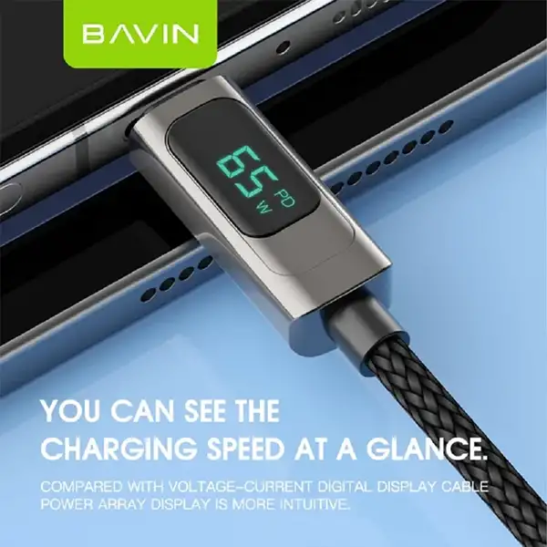 نمایشگر LED تعبیهشده روی کانکتور کابل لایتنینگ باوین مدل CB255، میزان وات را به صورت لحظه ای زمان شارژ گوشی نشان می دهد تا بتوانید سلامت و کارایی شارژر و کابل شارژ لایتنینگ اپل خود را پایش کنید و مطمئن شوید خروجی واقعی مطابق انتظار است. سری سوکتها از نوع فلزی مقاوم است که در برابر خمیدگی و اکسیداسیون، مقاوم است.این کابل تبدیل USB به لایتنینگ آیفون امکان انتقال داده با سرعت بالا و پایدار را فراهم می کند.